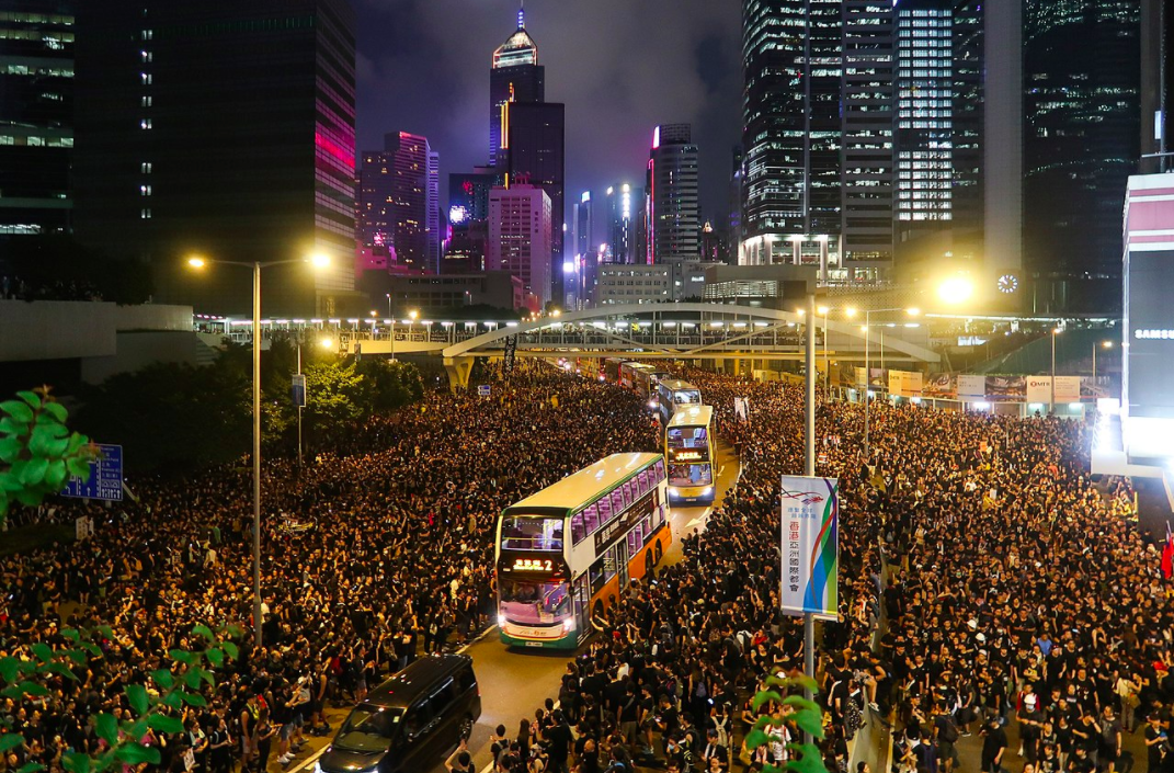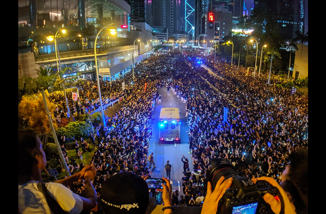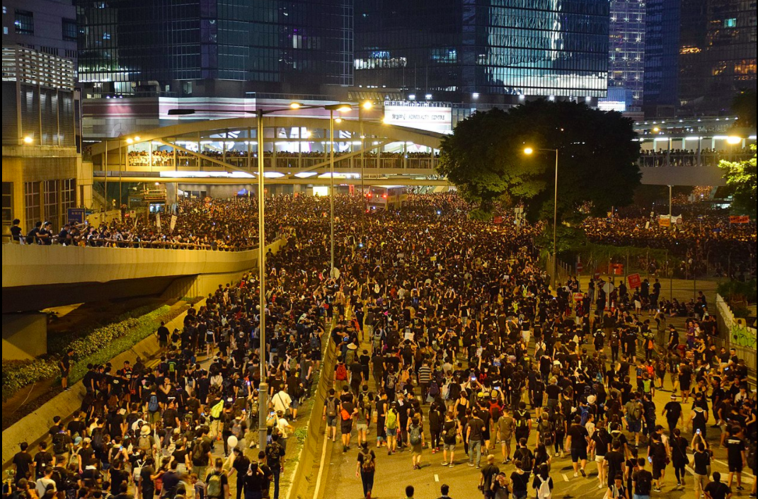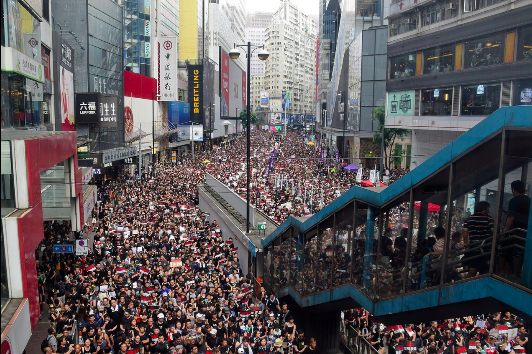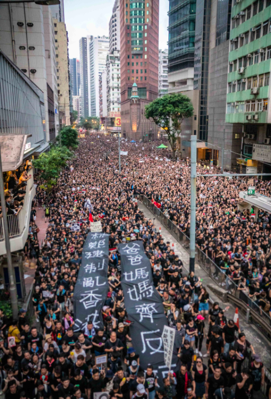 游行同样从维多利亚公园起步,终点为金钟立法会大楼,参与民众多以黑衣出席,原定于下午3时出发但由于人数太多于2时43分提前起步,同时有其他组别民众也由于维园拥堵决定从其他地点出发后汇入,民阵统计称共有200万+1人参加本次史诗级大游行,场面极其壮观但秩序井然,期间有救护车通过时游行民众以极其令人惊叹的速度开路创造“港版摩西开红海“。另有部分民众途中分流至太古广场悼念前日坠亡的梁凌杰。