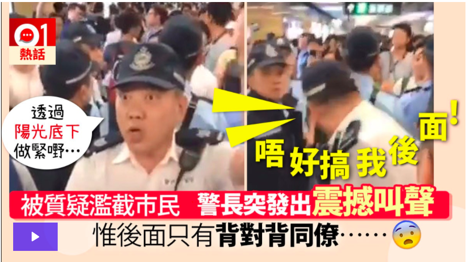 【逃犯條例】警長金鐘站搜身喊「唔好搞我後面」 網民:年度金句