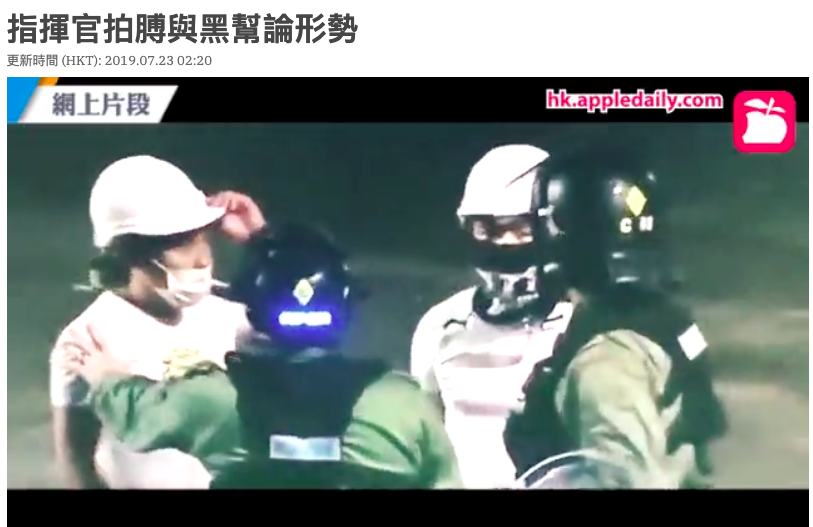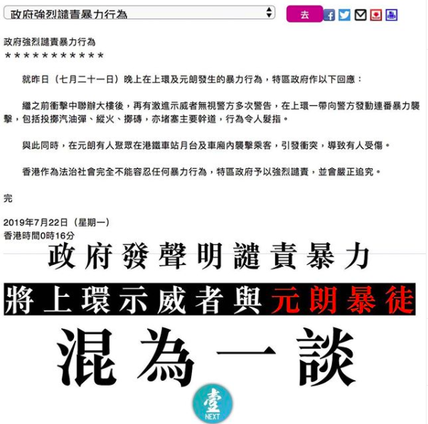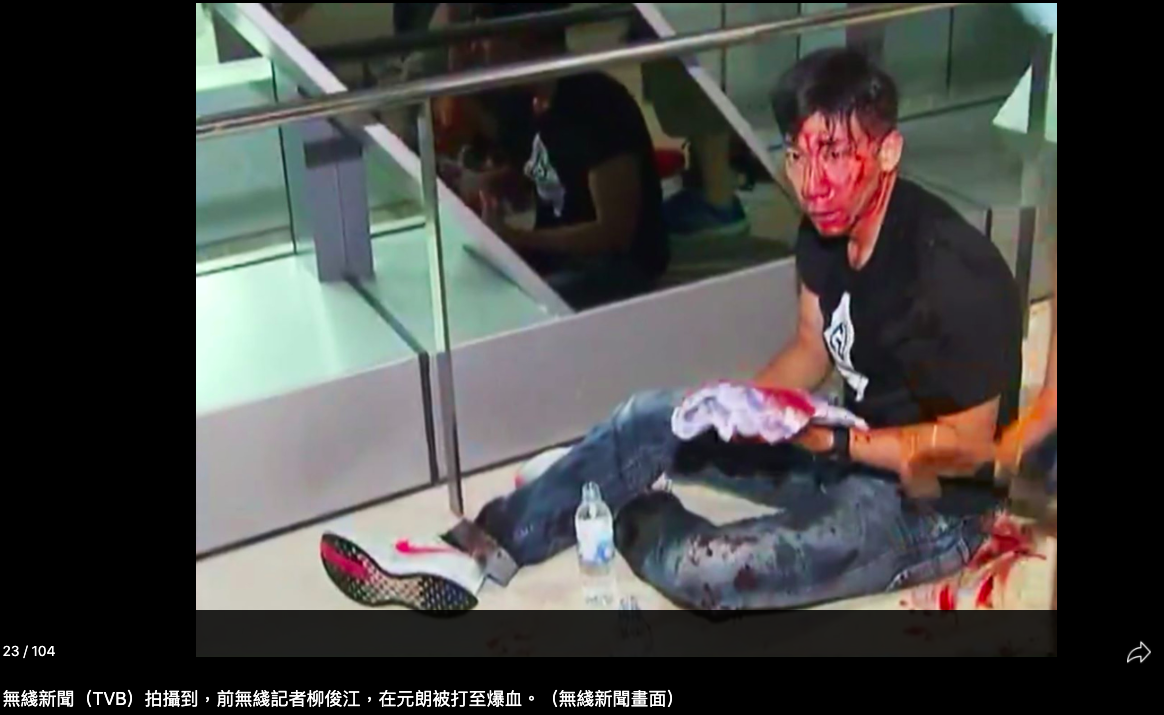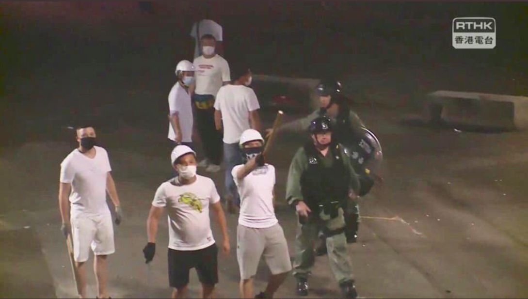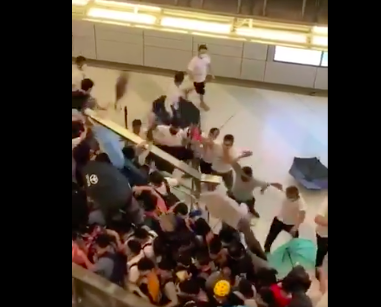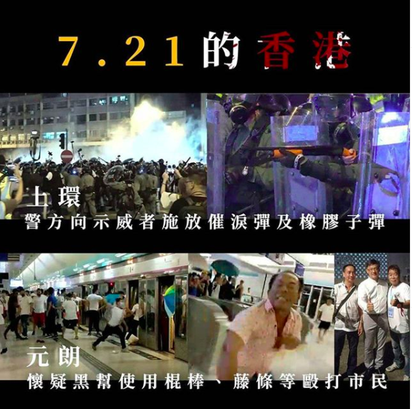 7月21日大游行结束后,首先爆发严重警民冲突,深夜11时30分大批身穿白衣、疑似黑社会群体手持捆绑追打市民和示威者,甚至冲入地铁月台和车厢任意殴打乘客,有36人紧急送医,4人重伤,1人垂危